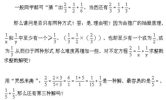 五年級奧數下冊:第七講 從不定方程1/n = 1/x + 1/y的整數解談起